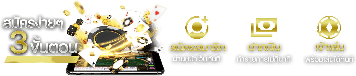 ตอบ : กรอกข้อมูลส่วนตัวในแบบฟอร์มหน้าเว็บ ยืนยันหมายเลขโทรศัพท์ ทำการฝากเงินครั้งแรก รับยูสเซอร์และรหัสผ่านผ่าน SMS สามารถเริ่มเล่นได้ทันที